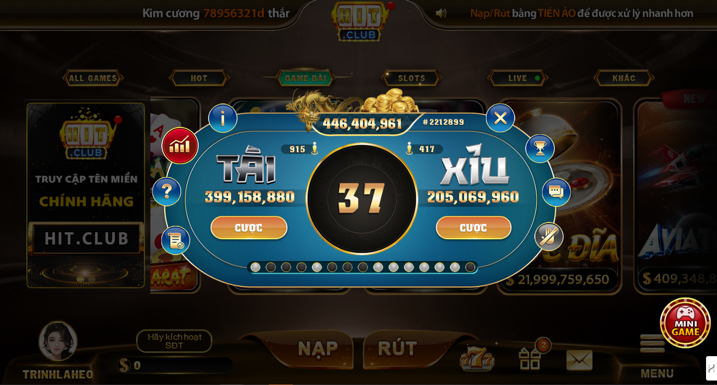 • Nạp và rút tiền tiện lợi: HitClub cung cấp nhiều phương thức nạp và rút tiền linh hoạt, giúp người chơi dễ dàng thực hiện các giao dịch một cách nhanh chóng và an toàn.