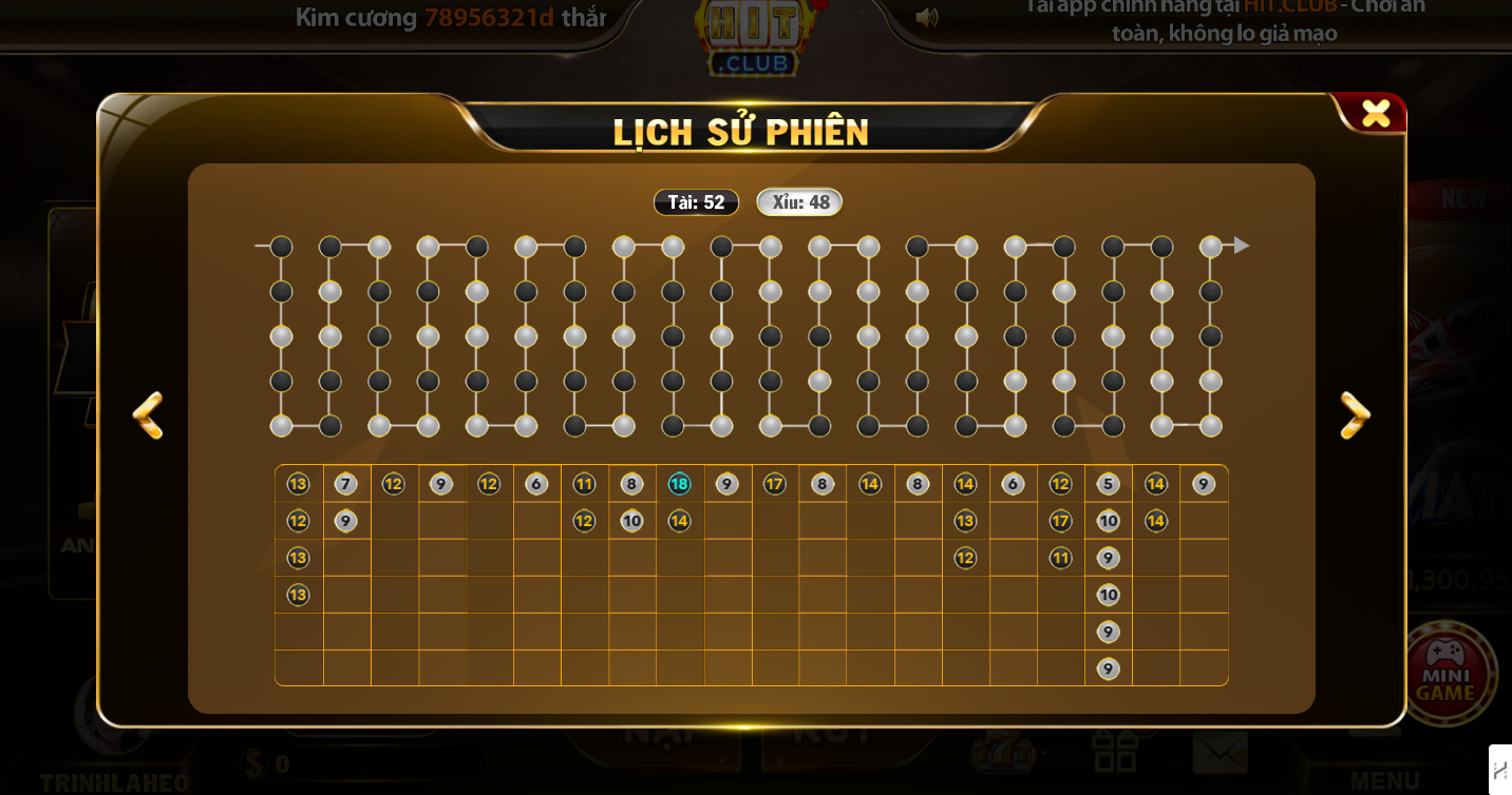 Hình ảnh lịch sử phiên, ghi nhận thứ tự trả điểm của mỗi xí ngầu